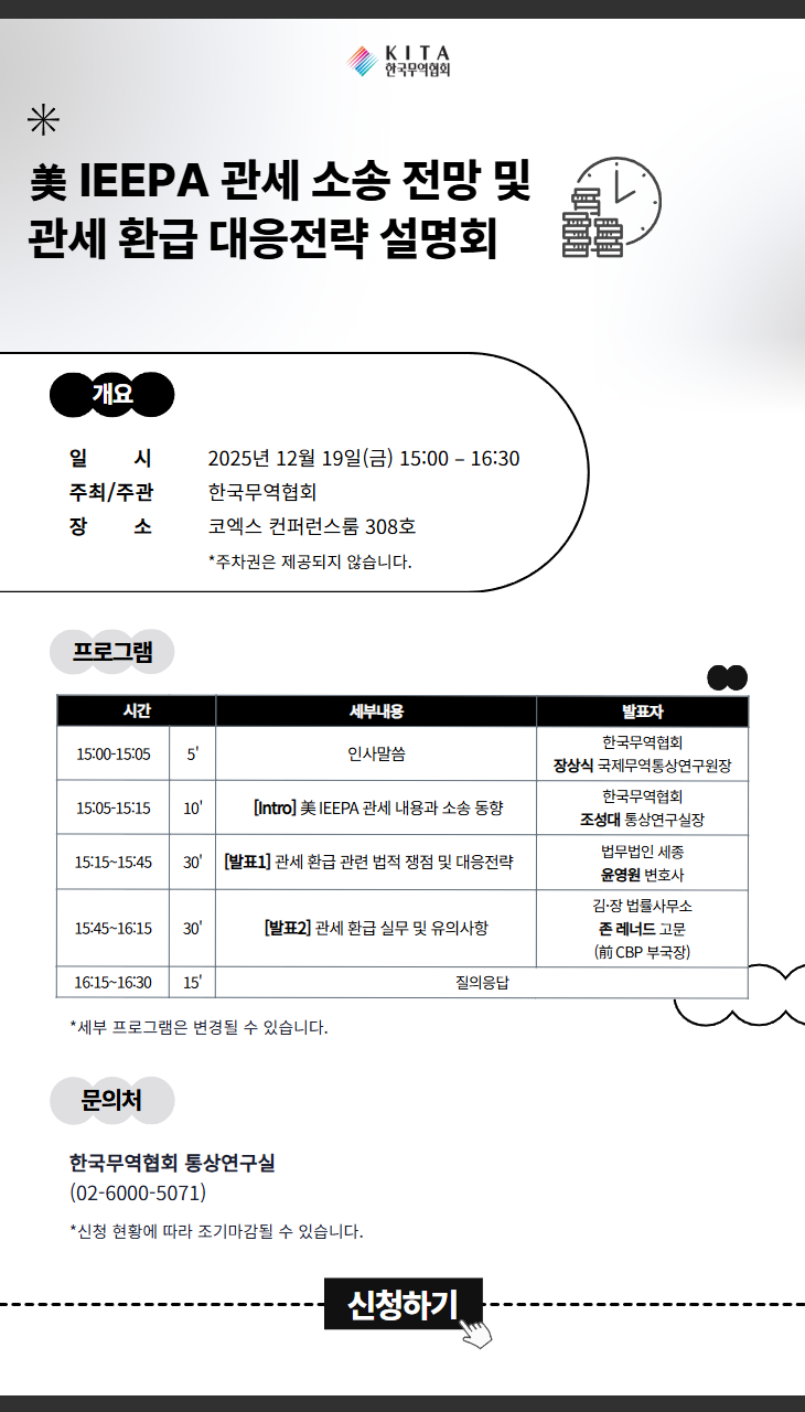 美 IEEPA 관세 소송 전망 및 관세 환급 대응전략 설명회