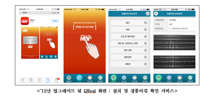 61. MTC 위변조 방지를 위한 QR코드 시스템은 어떤 것인가요? ※ 해당 자료에 대한 조언이나 문의는 기술환경실 왕찬훈 계장(02-559-3568,chanhoon.wang@ekosa.or.kr)에게 연락바랍니다. QReal시스템은 QR코드를 통해 품질검사증명서(MTC : Mill Test Certificates)의 진위를 육안으로 확인하고 위변조 내용 발견시 실시간으로 제보할 수 있도록 개발한 철강재 전용 스마트폰 애플리케이션이다. 2012년 하반기부터 정품 철강재 활성화 방안으로 국내 주요 철강사와의 지속적인 협의를 통해 실용성 극대화, 보안성 강화 등을 핵심과제로 연구해 왔으며, 현재 포스코, 현대제철, 동국제강, 휴스틸 4개사가 운영 중에 있다. 철강재 특성상 유일한 정품증빙서류인 품질검사증명서(MTC)가 현장에서 대부분 사본으로 통용되는 점이 악용되어, 그동안 적지 않은 위변조 사례가 보고된 바 있다. QReal시스템을 통해 우수한 우리 철강제품의 품질서비스 스마트화를 도모하고, 소비자로 하여금 국산 정품 철강재의 신뢰를 재고할 수 있도록 개발한 국내 유일의 애플리케이션이라고 할 수 있다. 우리나라 철강산업은 오랜 역사 및 국제적인 역량에도 불구하고 수입 저급재와 공정경쟁 할 수 있는 스마트 유통 시스템 환경이 사실상 전무했다. QReal시스템을 필두로 철강재 품질서비스를 지속적으로 강화하여 향후 부적합 철강재 단속강화를 위한 시너지 효과를 거둘 수 있을 것으로 보고 있다. 2014년 6월 롤마킹이 국내산으로 위변조 된 수입 철근 유통사건이 발생된 바 있다. 철근의 경우 KS표준(KSD3504)에 따라 롤마킹으로 국가표시(K, J, C 등) 및 제조사(HS, DK 등) 표기를 하도록 되어 있으나, 의무사항만 언급되어 있을 뿐 표기방법 및 관리의 부재로 인해 소비자 혼란이 일어나는 경우가 발생되고 있다. ![]() ![]() 한국철강협회에서는 QReal을 통한 정품정보 확대 뿐 아니라 이를 기반으로 철근 롤마킹 등 정품마킹에 대한 관리체계구축을 검토하고 있다. 최근 중국 하북태강강철에서 시판품 조사 샘플에 대한 롤마킹의 차이 등을 근거로 자사의 제품임을 부인하는 등 향후 지속적으로 논란의 소지가 있을 것으로 판단되며 제도화를 위한 심도있는 검토가 필요하다. ![]() 현재 QReal 사용자가 2~3천여명에 달하고 있는데, 금년도에는 QReal을 통해 중요정보를 실시간으로 전파하고 각 제강사 제품에 대한 정품마킹을 시각자료를 소비자에게 직접 제공하여 정품여부를 실시간으로 비교 확인 할 수 있도록 애플리케이션을 업그레이드 하였다. 시스템 구축 결과 한수원 사태 등에 따른 지속적인 민원감소, 담당자의 행정처리 용이 등 대외적으로 효과를 거두고 있다는 의견이 많다. 그러나 시스템의 지속적인 확대에도 불구하고 수요처에서 QReal에 대한 인식이 부족해 지속적인 홍보강화가 필요한 상황이어서 2016년도에는 QReal 적용회원사 확대와 대수요가 홍보를 적극적으로 강화할 계획이다. |