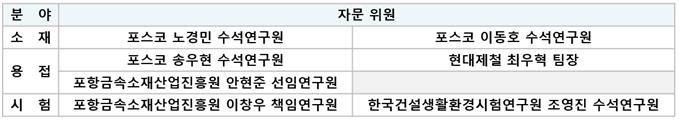 기술자문위원으로는 포스코 노경민 수석연구원, 현대제철 최우혁 팀장, 포항금속소재산업진흥원 이창우 책임연구원 등 7명이 위촉되었다.